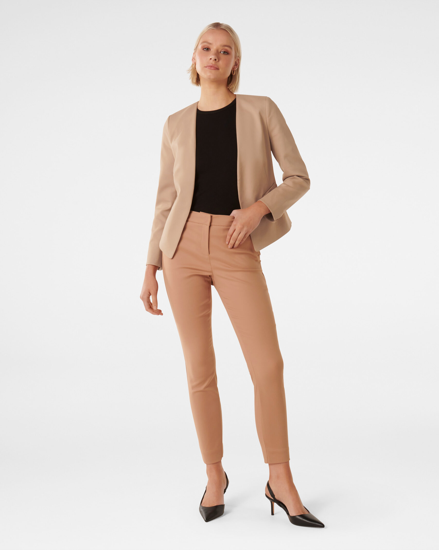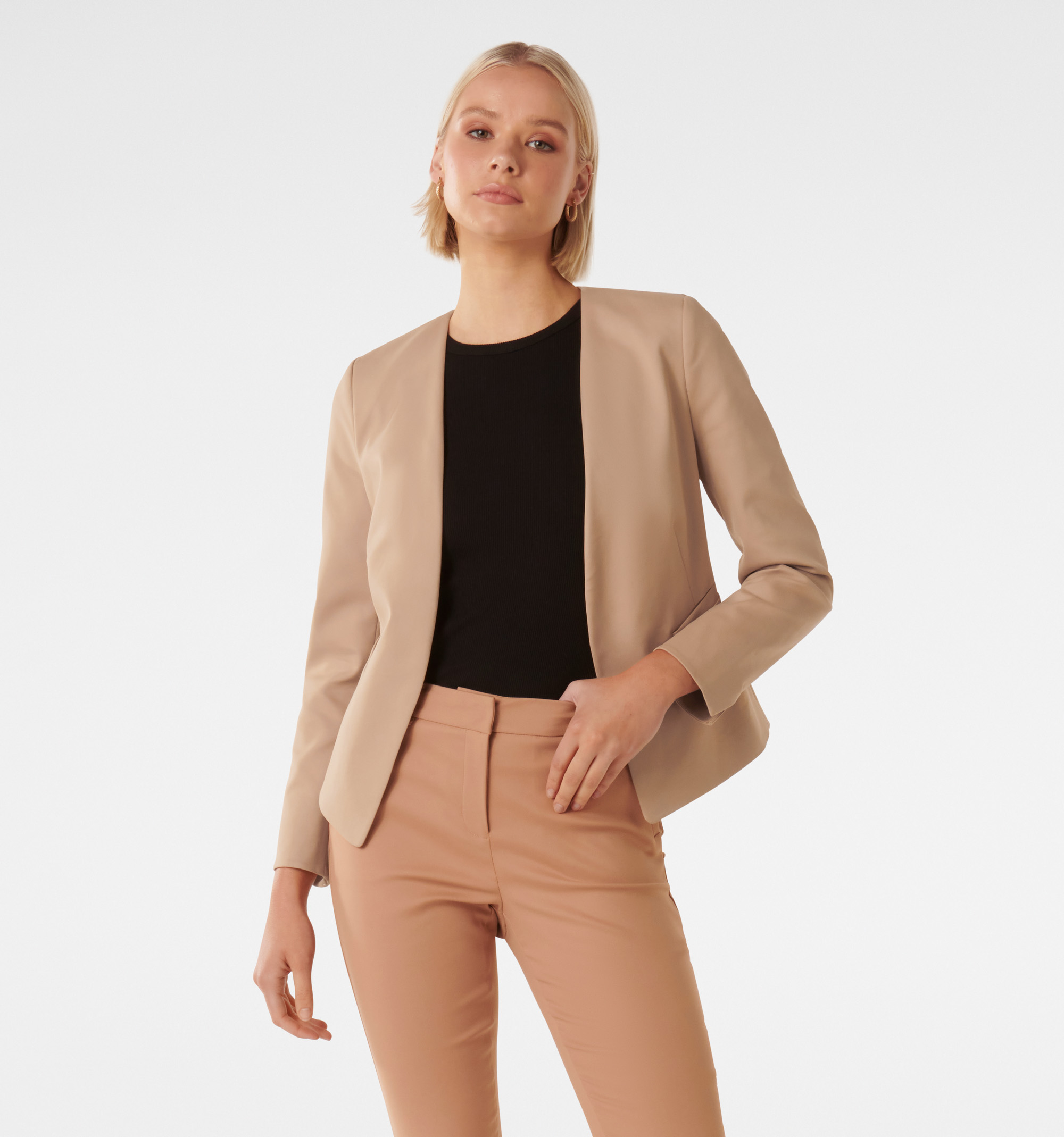 - A sleek blazer with fitted tailoring to elevate your look