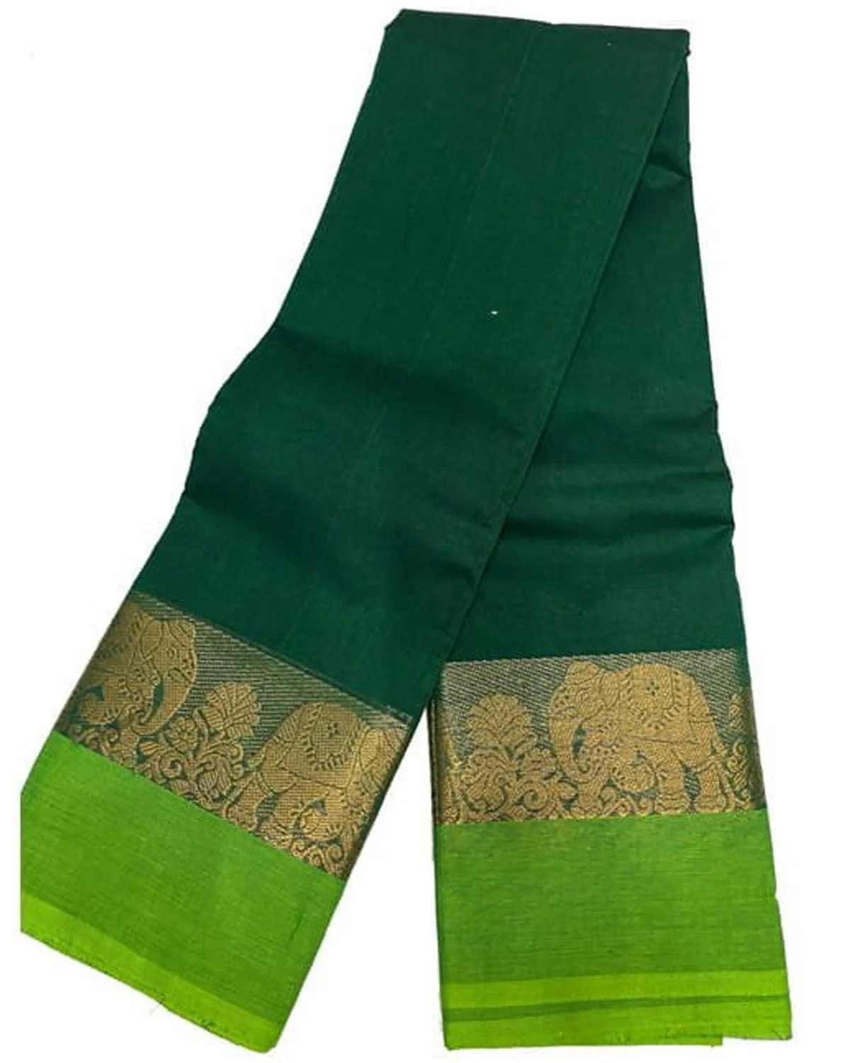 Green Color Narayanpet Pure cotton saree with Running Blouse piece For Womens with woven border and striped pallu.